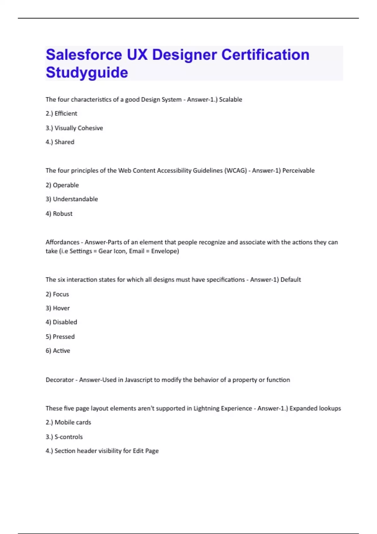 Salesforce UX Designer Certification Study guide Questions and Answers