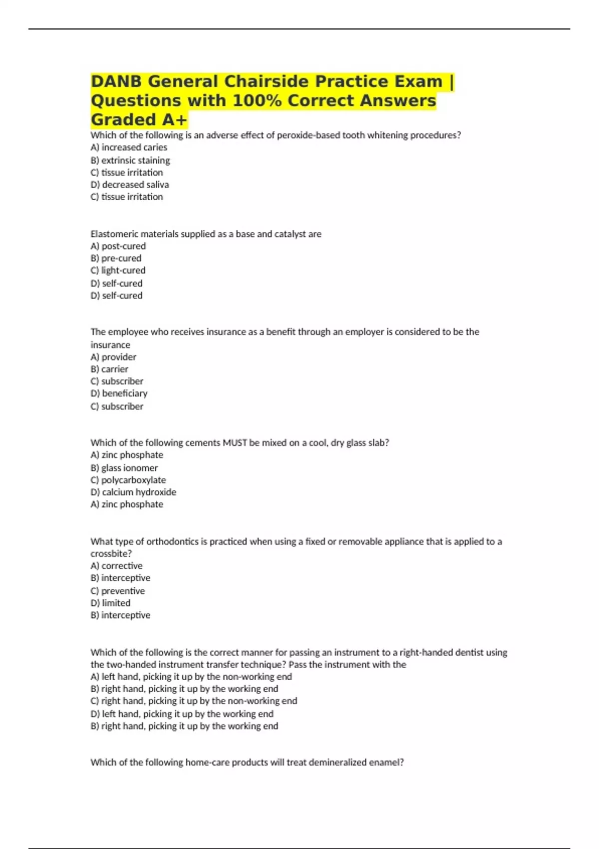 Questions with 100% Correct Answers