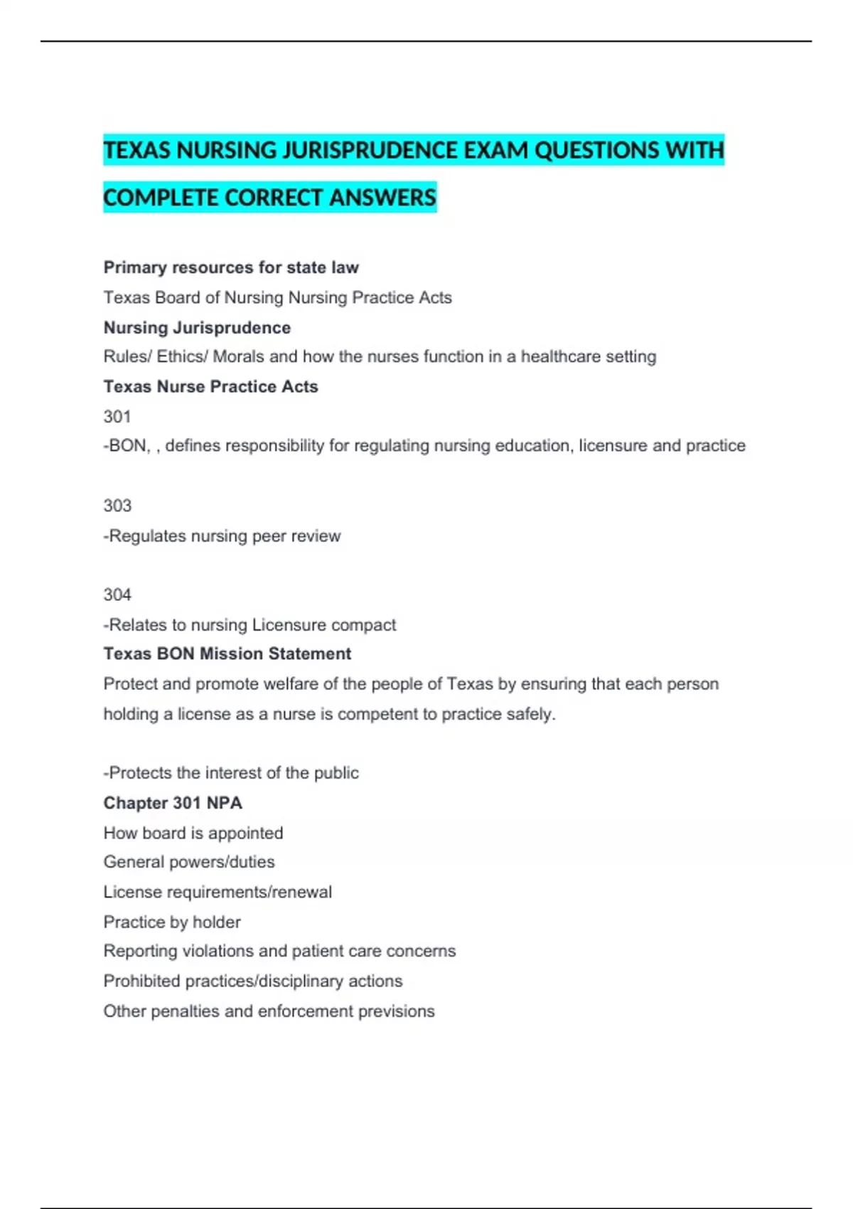 Texas Board of Nursing Nursing Practice Acts