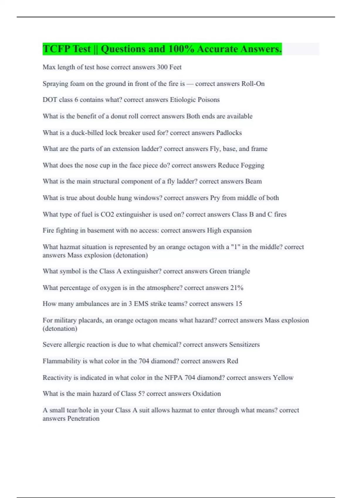 TCFP Test || Questions and 100% Accurate Answers.