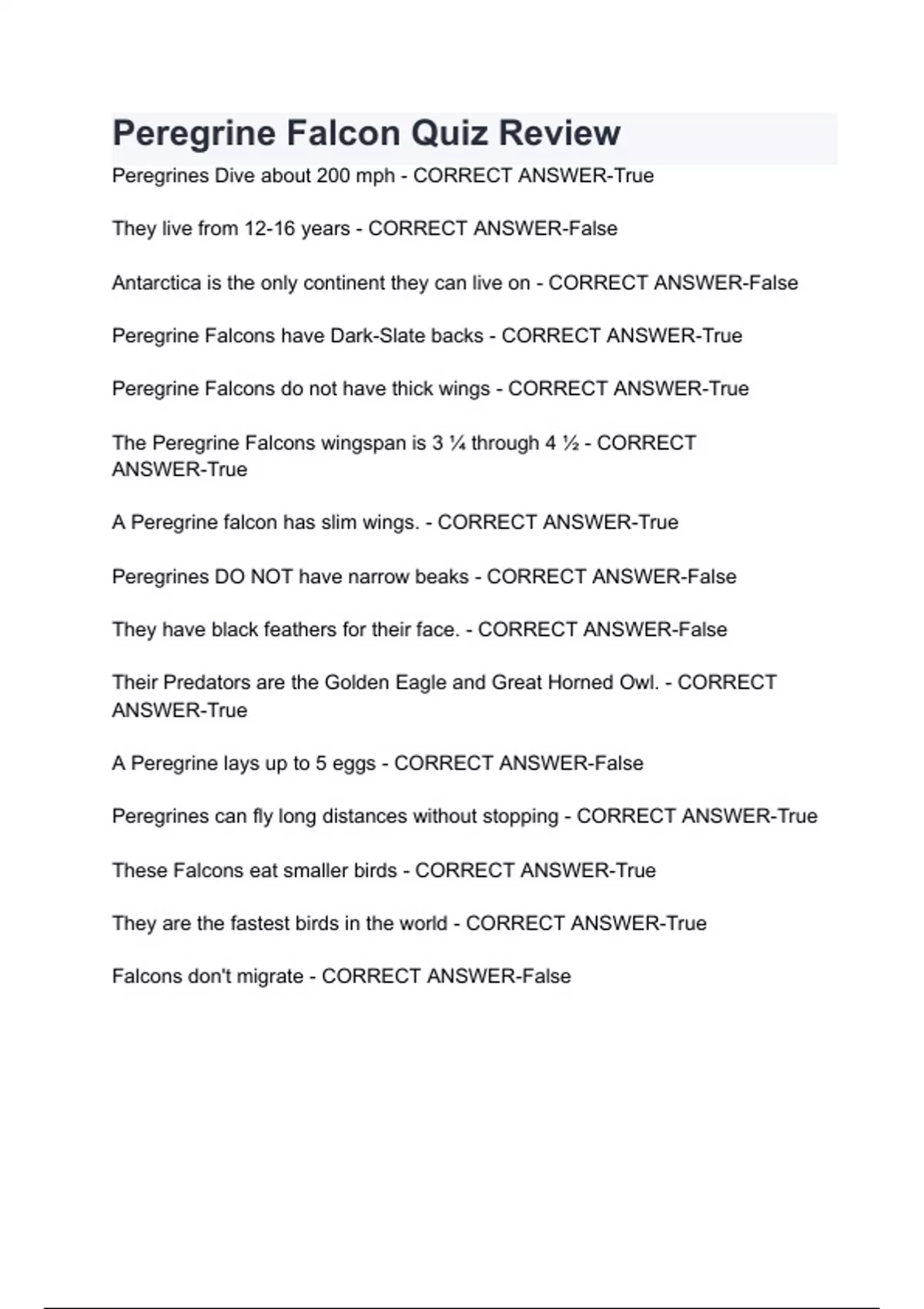 Peregrine Falcon Quiz Review with complete solution / Latest updated .