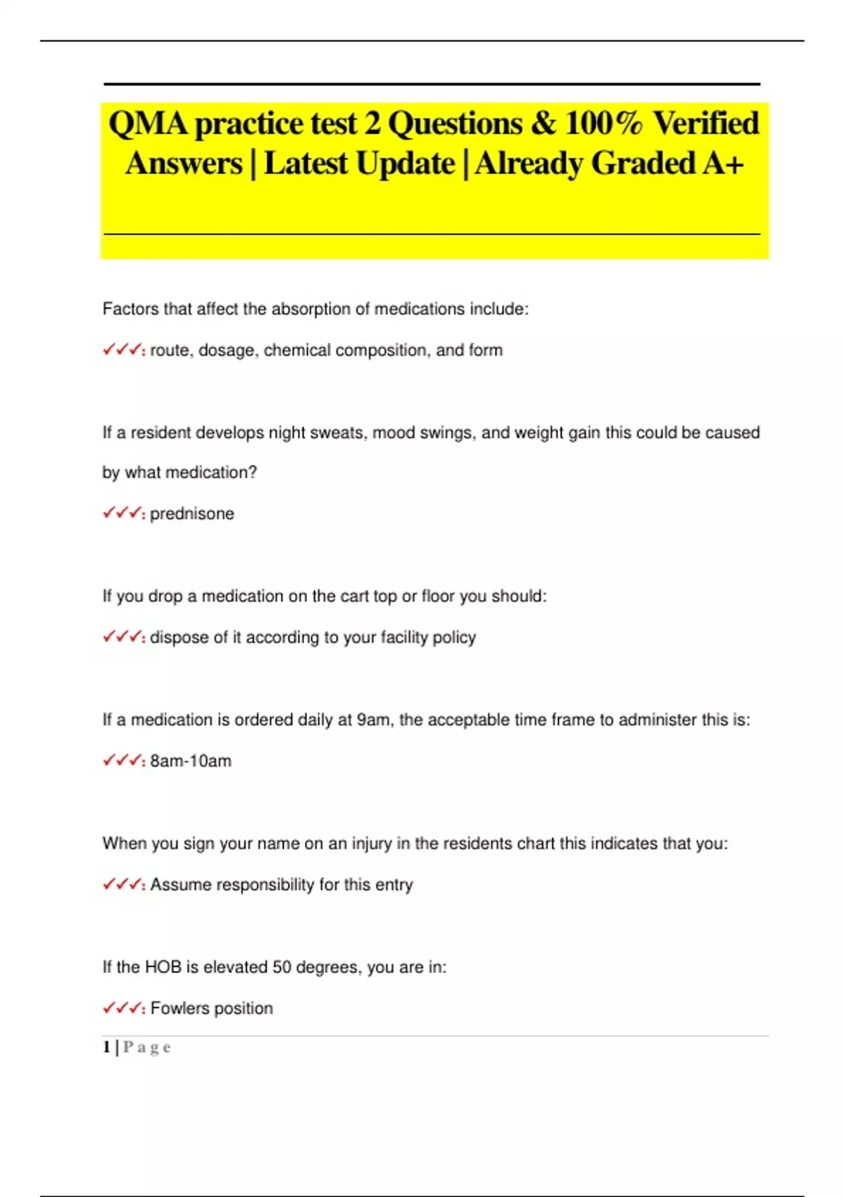 QMA practice test 2 Questions & 100% Verified Answers | Latest Update | Already Graded A+