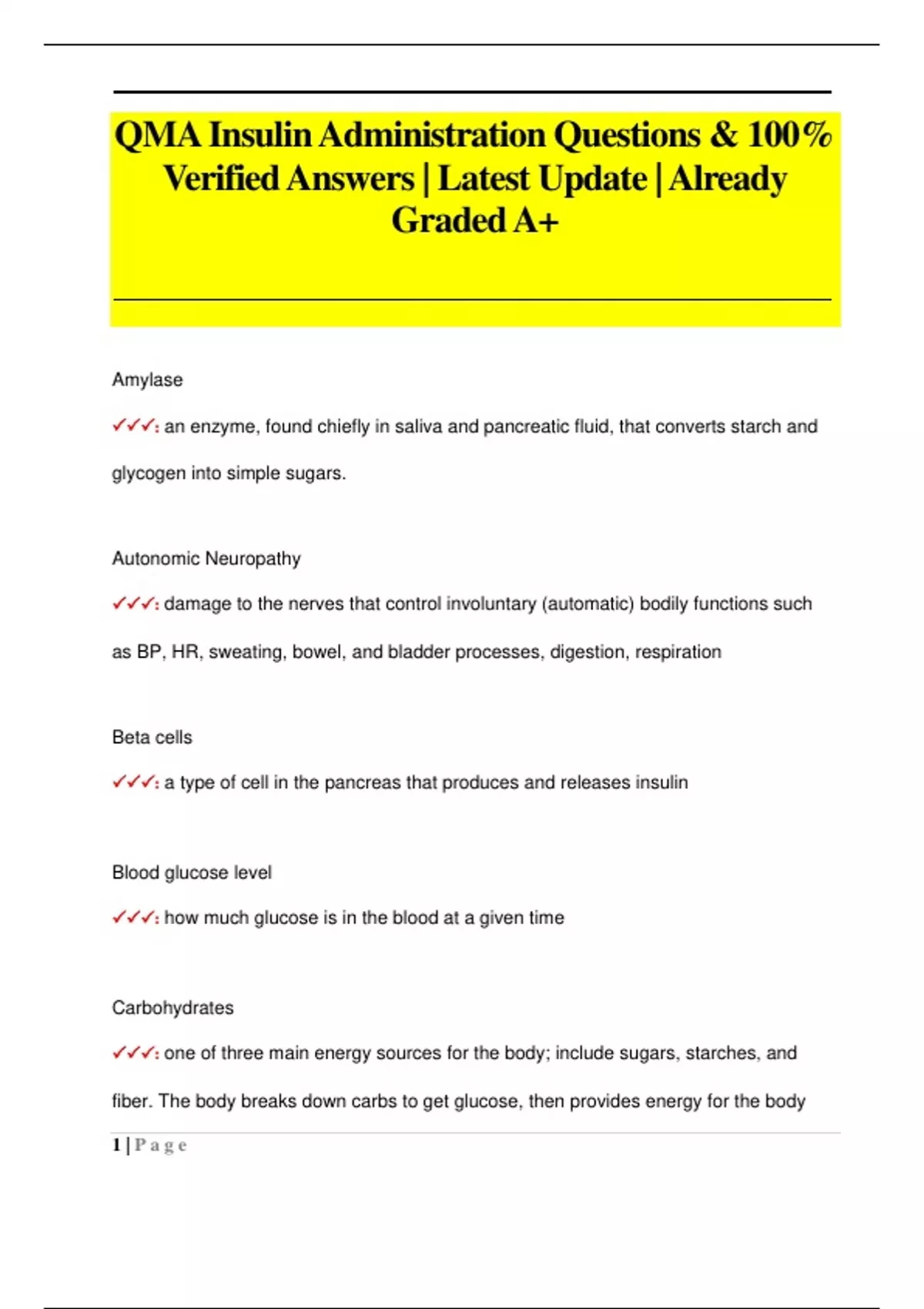 QMA Insulin Administration Questions & 100% Verified Answers | Latest Update | Already Graded A+