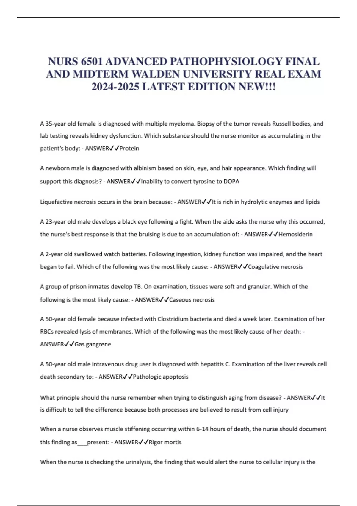 NURS 6501 ADVANCED PATHOPHYSIOLOGY FINAL AND MIDTERM WALDEN UNIVERSITY REAL EXAM LATEST EDITION NEW!!!