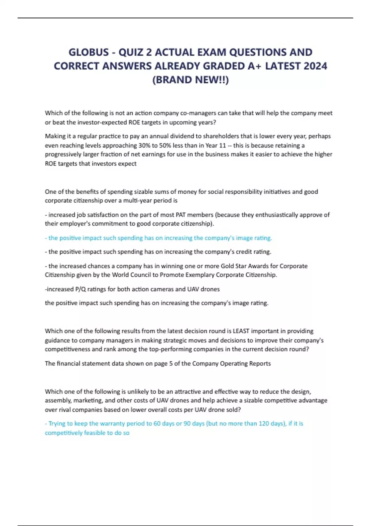 GLOBUS - QUIZ 2 ACTUAL EXAM QUESTIONS AND CORRECT ANSWERS ALREADY GRADED A+ LATEST 2024 (BRAND NEW!!)