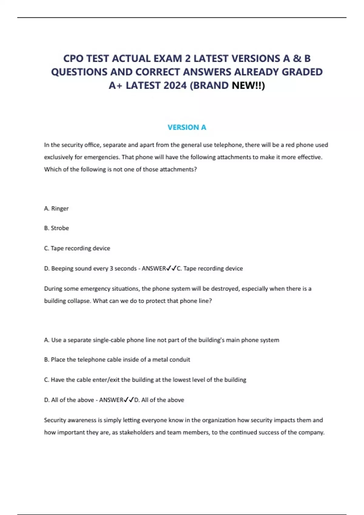 CPO TEST ACTUAL EXAM 2 LATEST VERSIONS A & B QUESTIONS AND CORRECT ANSWERS ALREADY GRADED A+ LATEST 2024 (BRAND NEW!!).