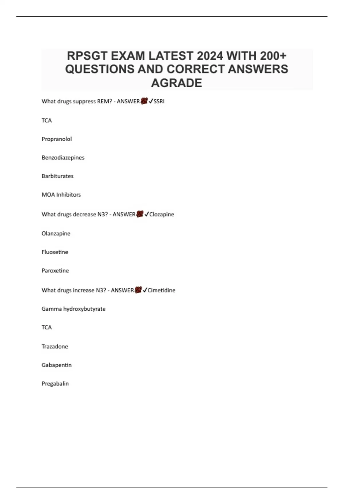 RPSGT EXAM LATEST 2024 WITH 200+ QUESTIONS AND CORRECT ANSWERS AGRADE