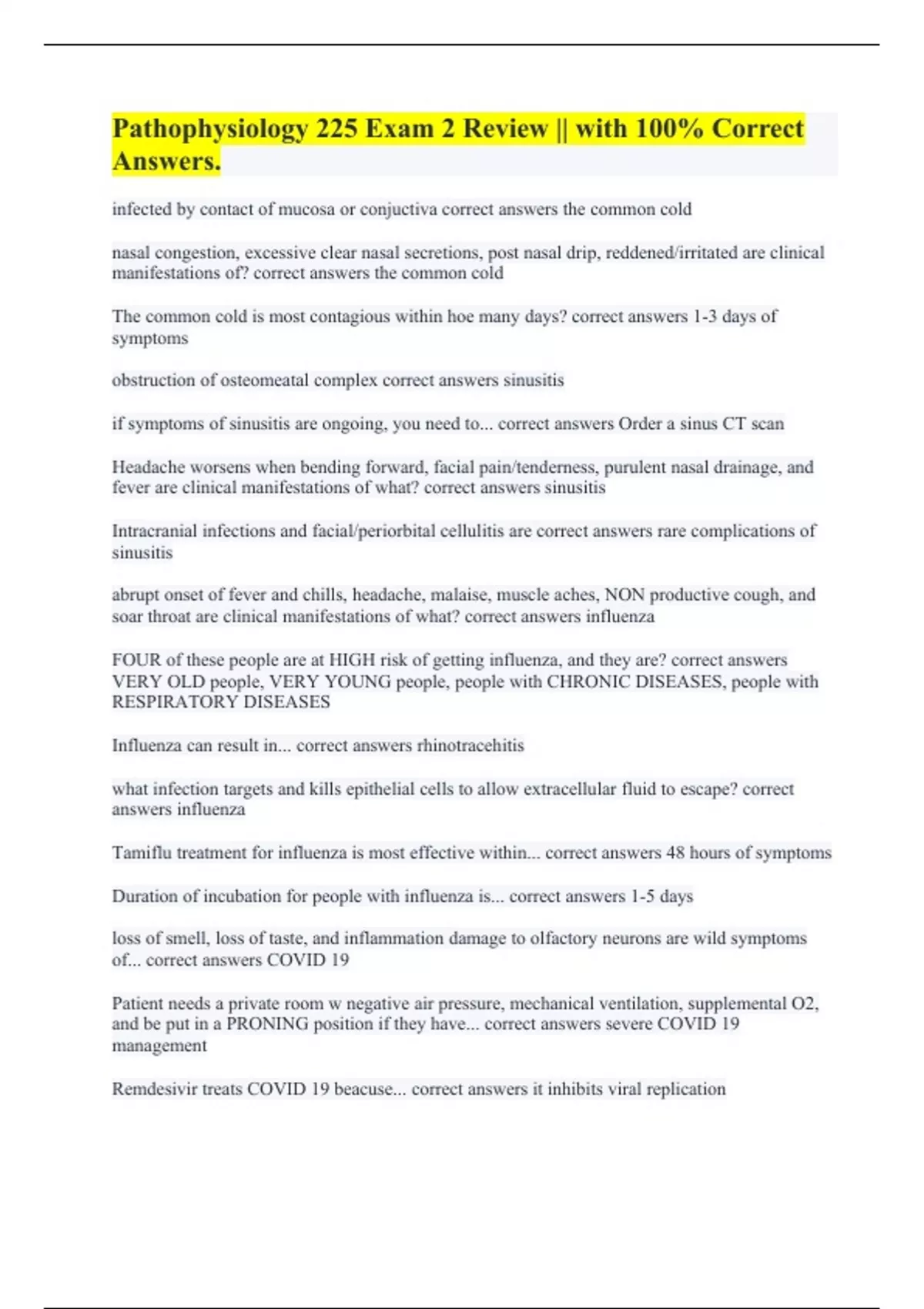 Pathophysiology 225 Exam 2 Review || with 100% Correct Answers.