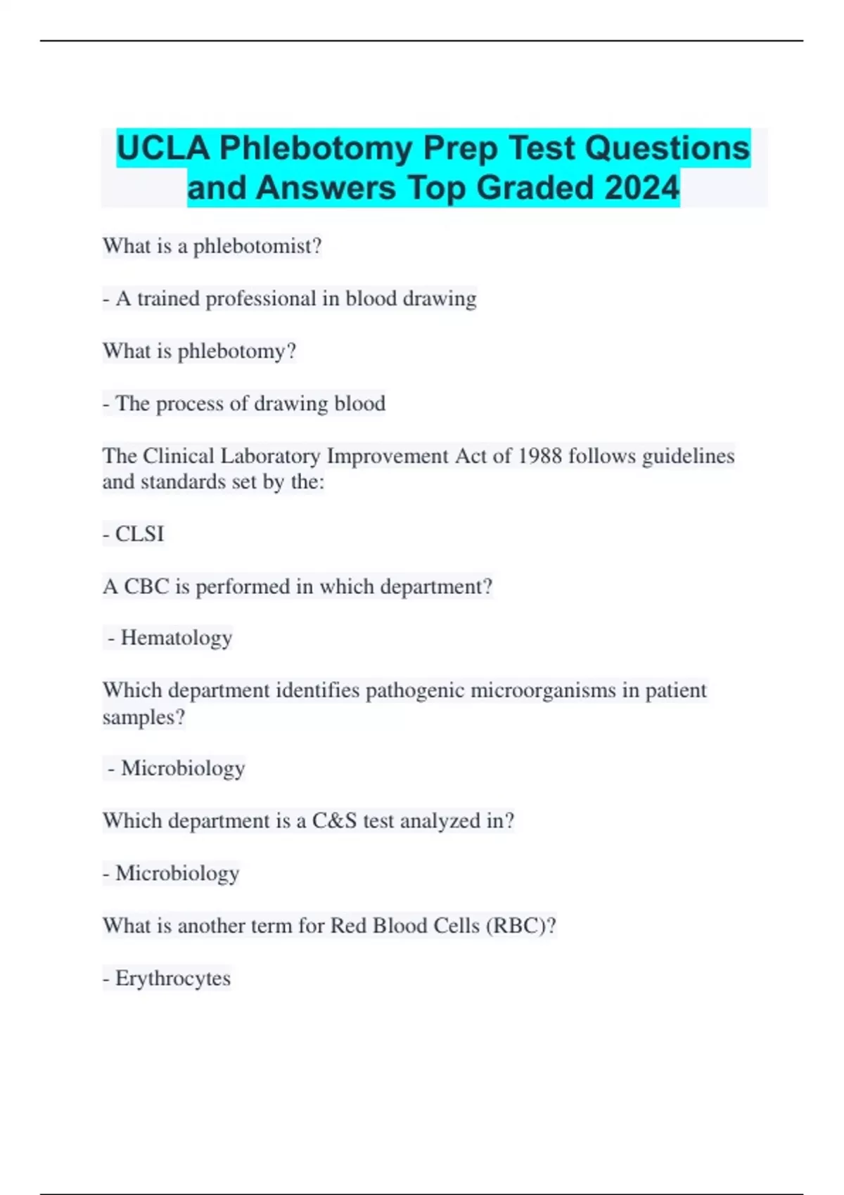 UCLA Phlebotomy Prep Test Questions and Answers Top Graded 2024