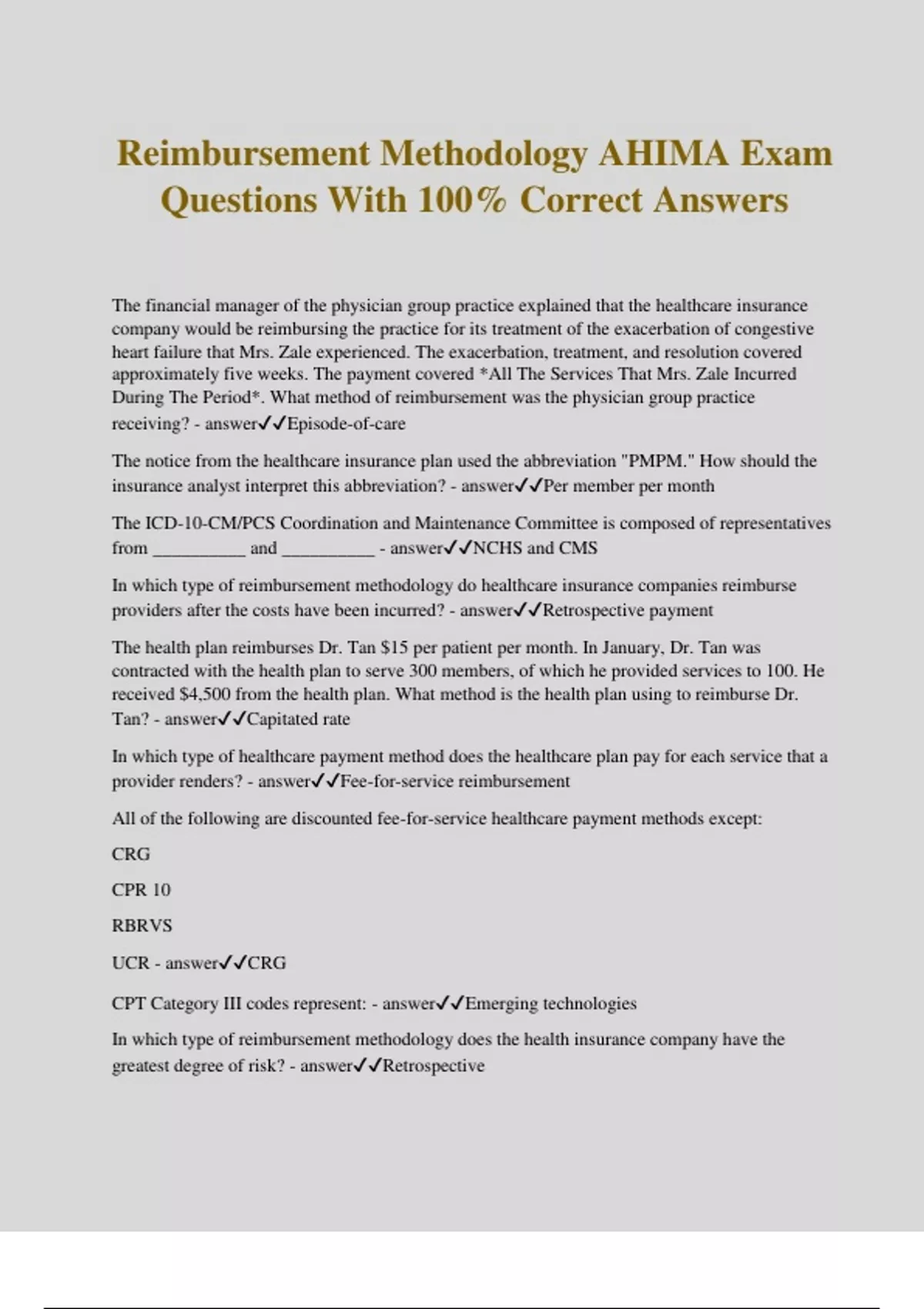 Reimbursement Methodology AHIMA Exam Questions With 100% Correct Answers