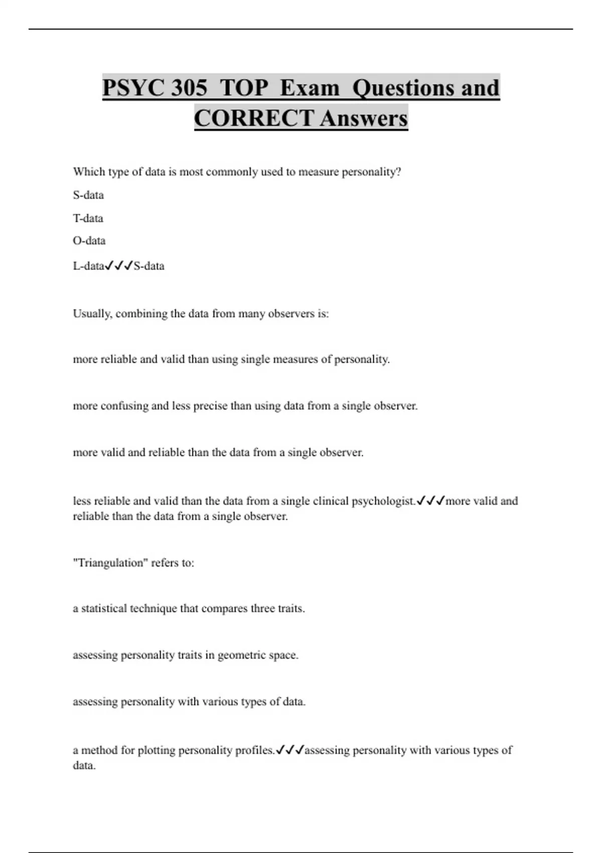 PSYC 305 TOP Exam Questions and CORRECT Answers