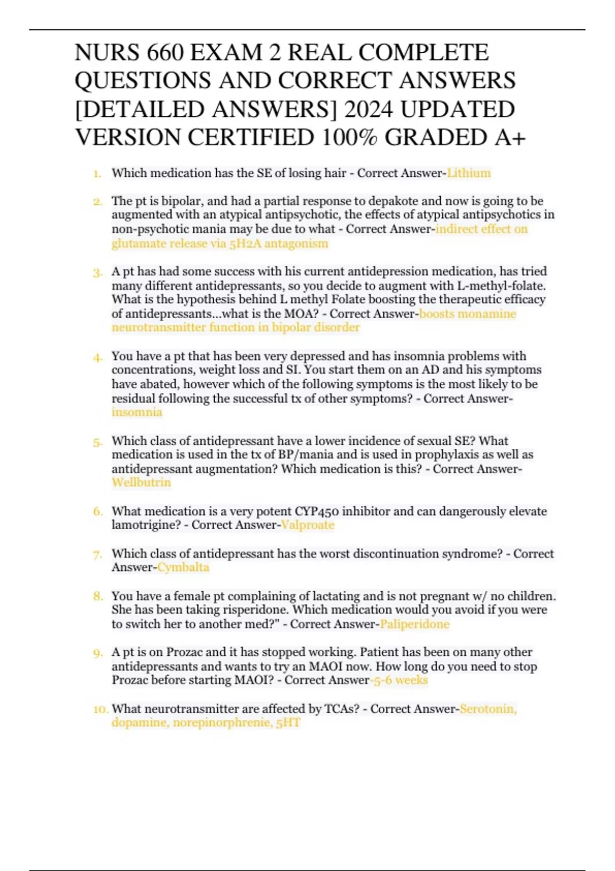 NURS 660 EXAM 2 REAL COMPLETE QUESTIONS AND CORRECT ANSWERS [DETAILED ANSWERS] 2024 UPDATED VERSION CERTIFIED 100% GRADED A+ NURS 660 EXAM 2 REAL COMPLETE QUESTIONS AND CORRECT ANSWERS [DETAILED ANSWERS] 2024 UPDATED VERSION CERTIFIED 100% GRADED A+ NURS 660 EXAM 2 REAL COMPLETE QUESTIONS AND CORRECT ANSWERS [DETAILED ANSWERS] 2024 UPDATED VERSION CERTIFIED 100% GRADED A+