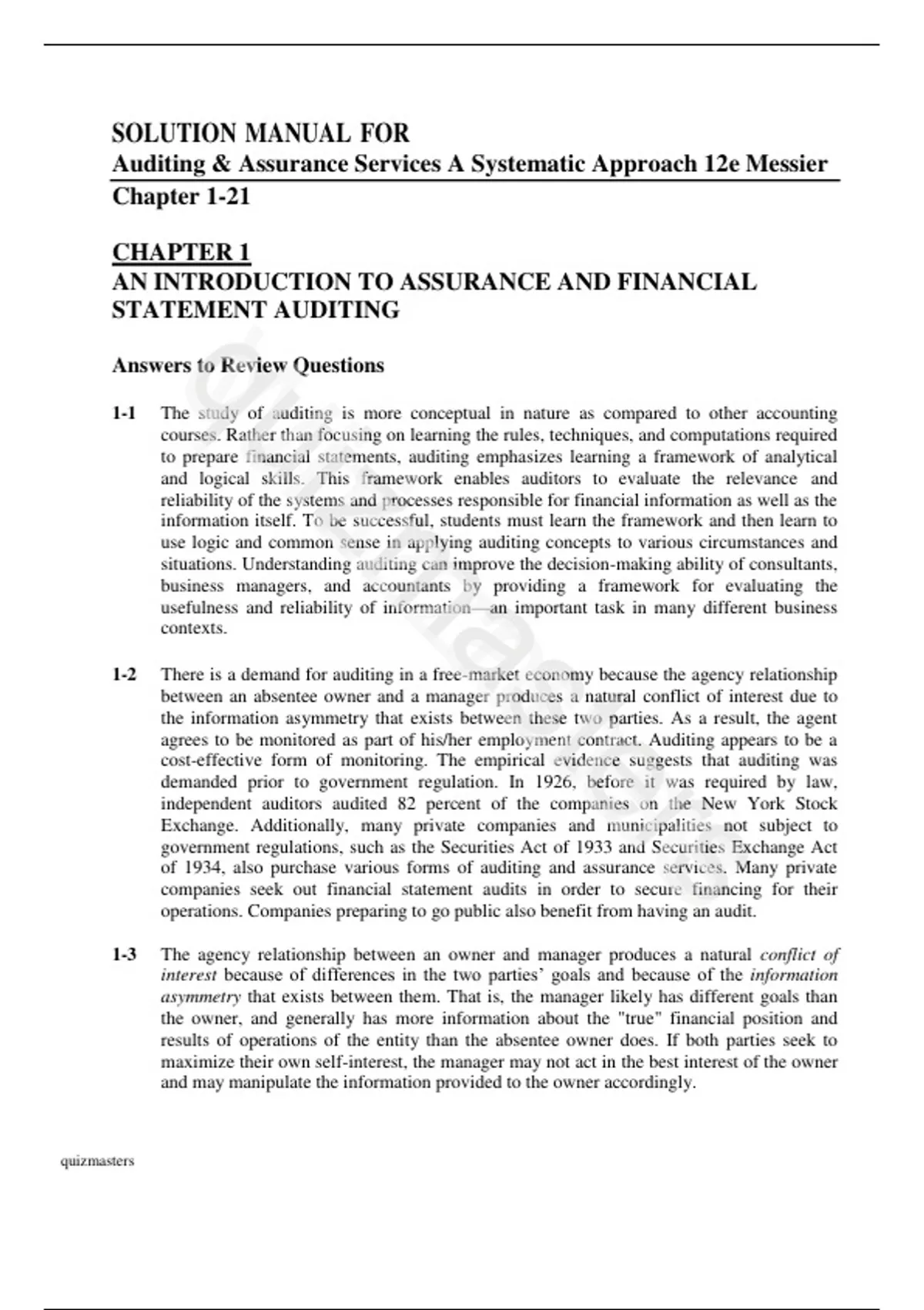 Solution Manual for Auditing & Assurance Services A Systematic Approach 12th Edition by William Messier Jr, Steven Glover, Douglas Prawit