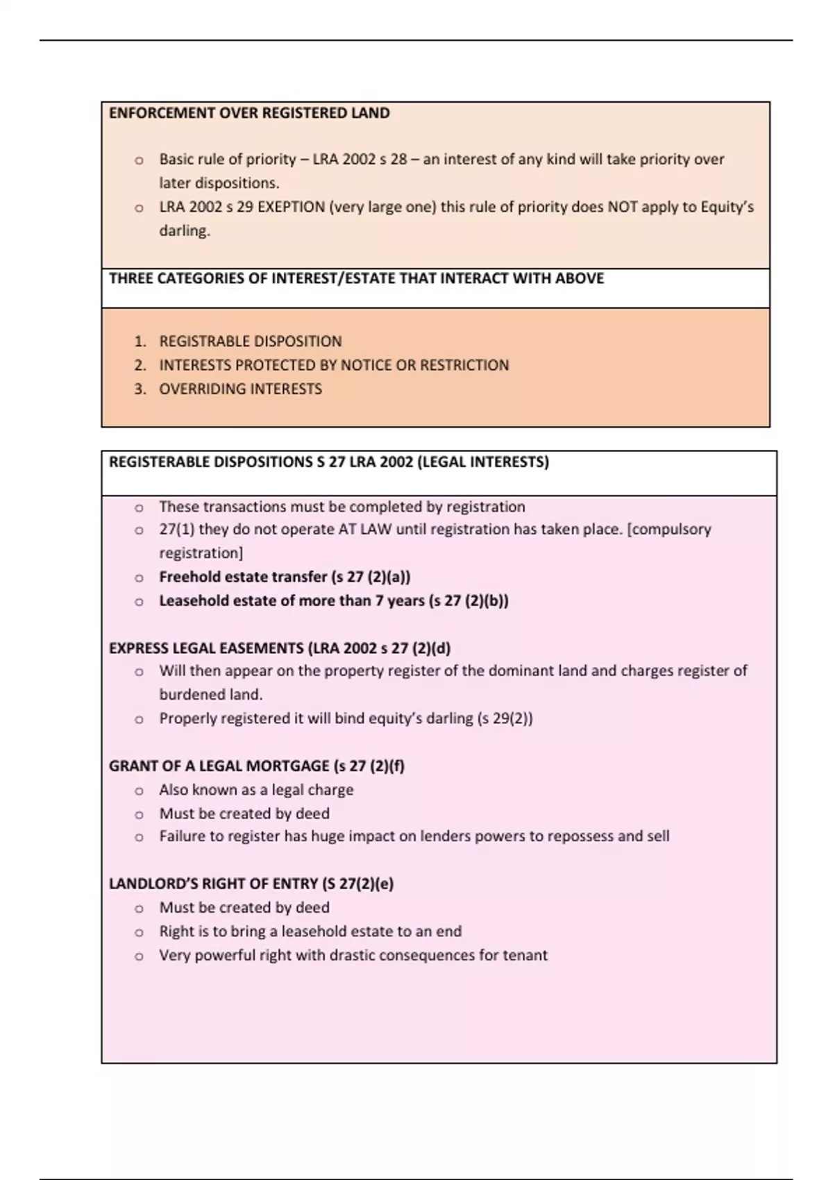 o Basic rule of priority – LRA 2002 s 28 – an interest of any kind will take priority over