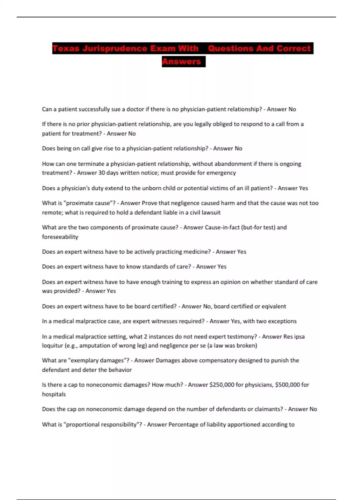 Texas Jurisprudence Exam With Questions And Correct Answers ...
