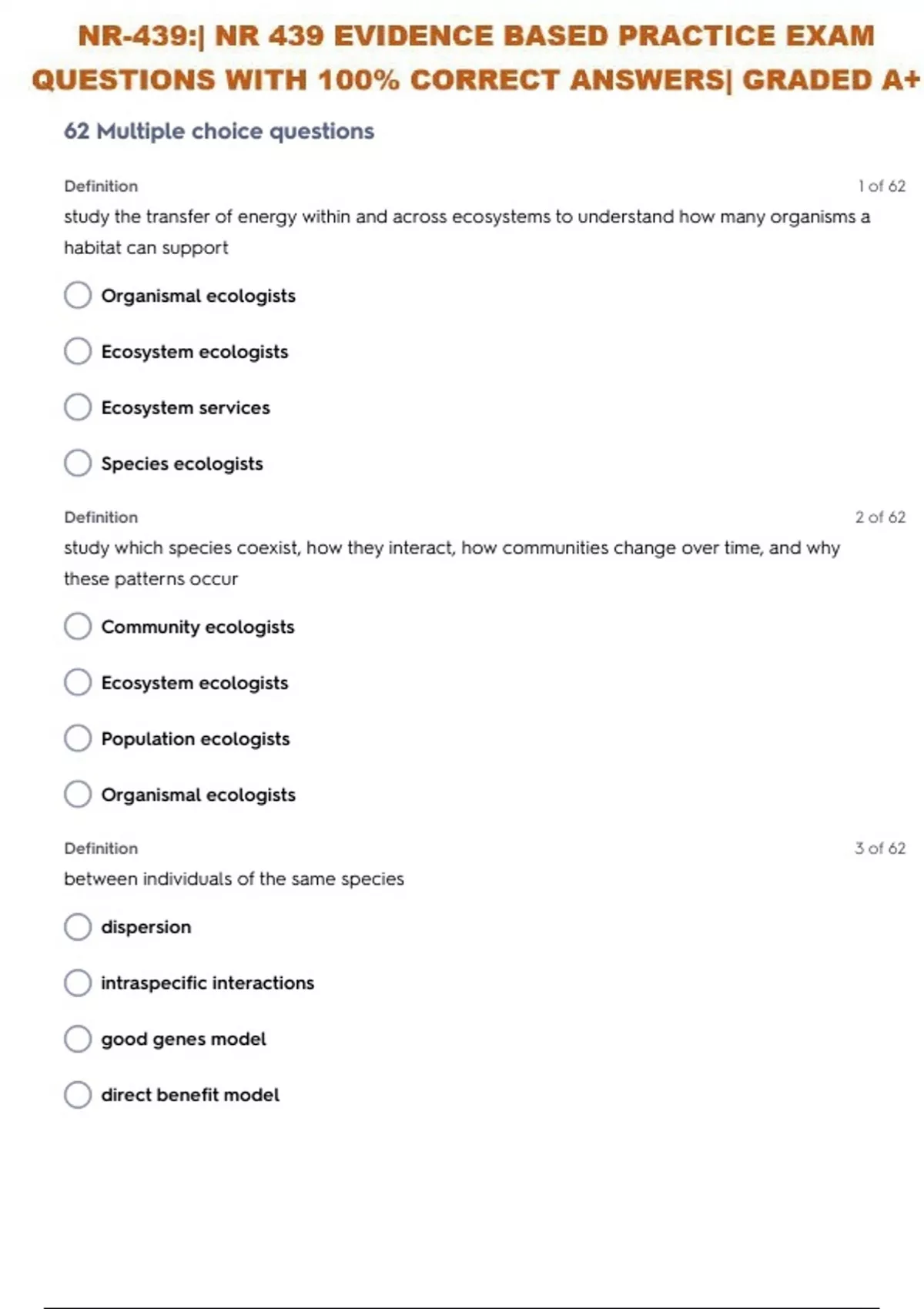 ALL IN ONE PACKAGE DEAL FOR NR-439:| NR 439 EVIDENCE BASED PRACTICE COMPLETE SOLUTIONS
