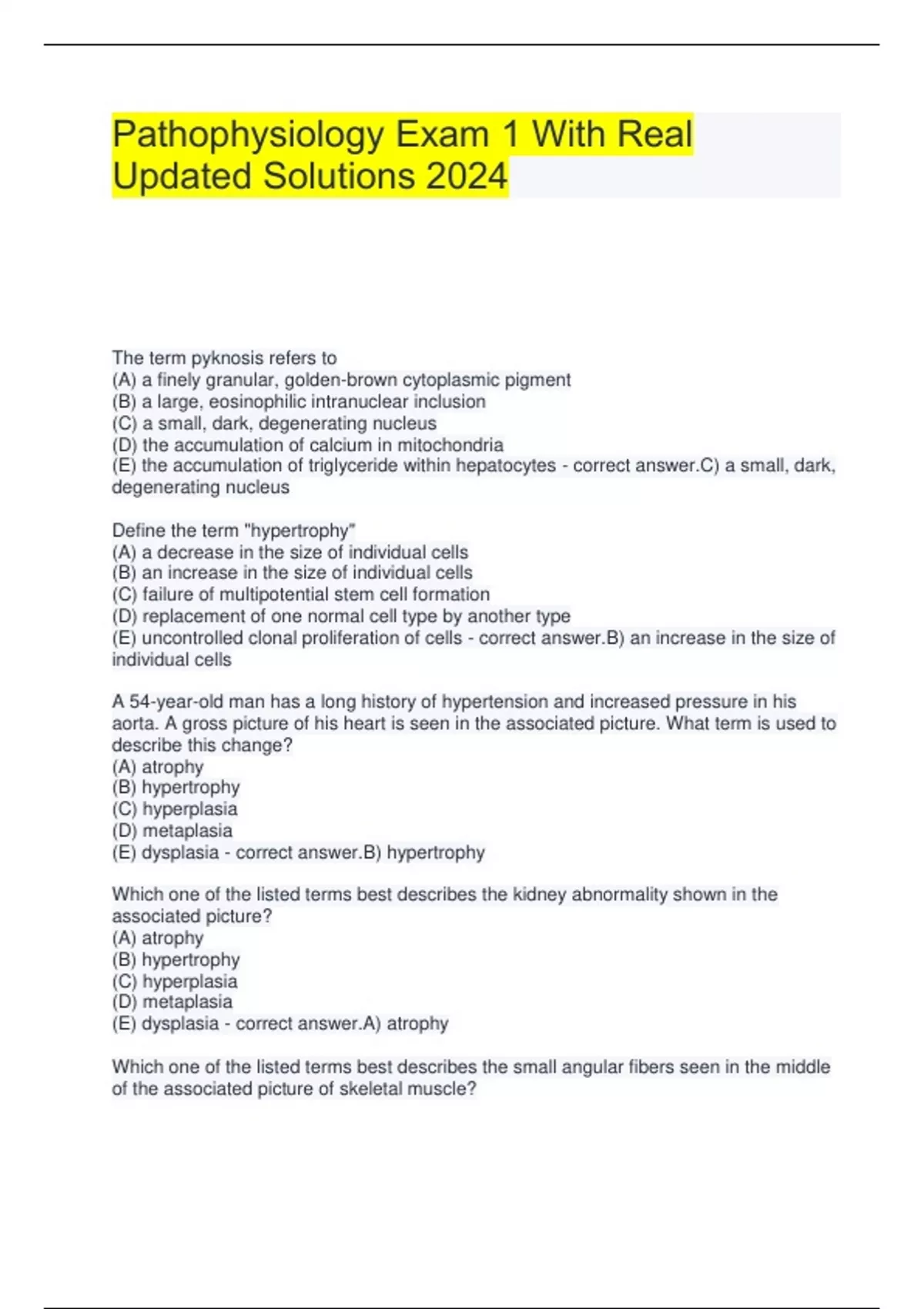 Package deal for Pathophysiology Practice Exam 1 With Correctly Solved Solutions 2024