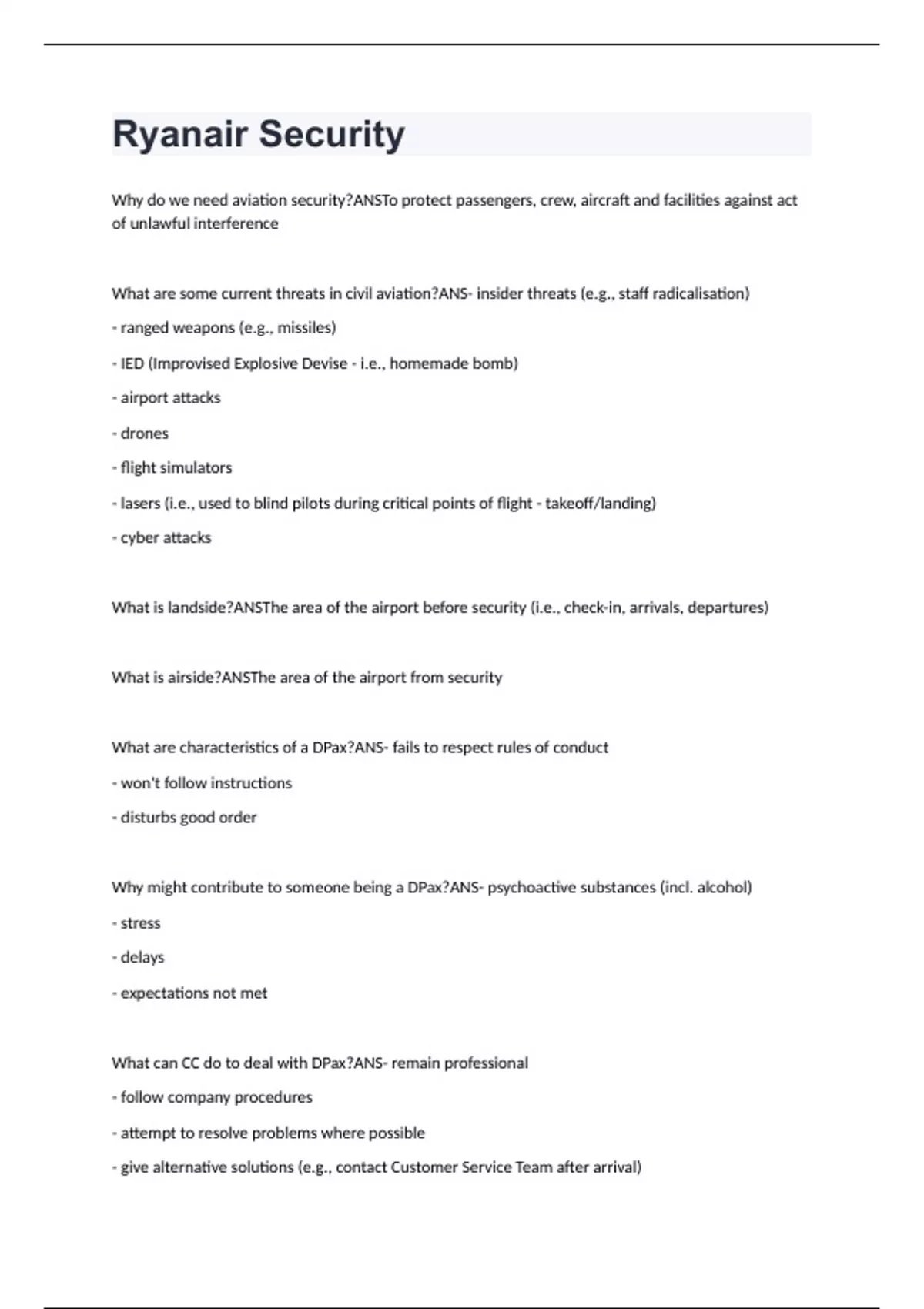 Ryanair Security Exam Questions And Answers (GRADED A+)