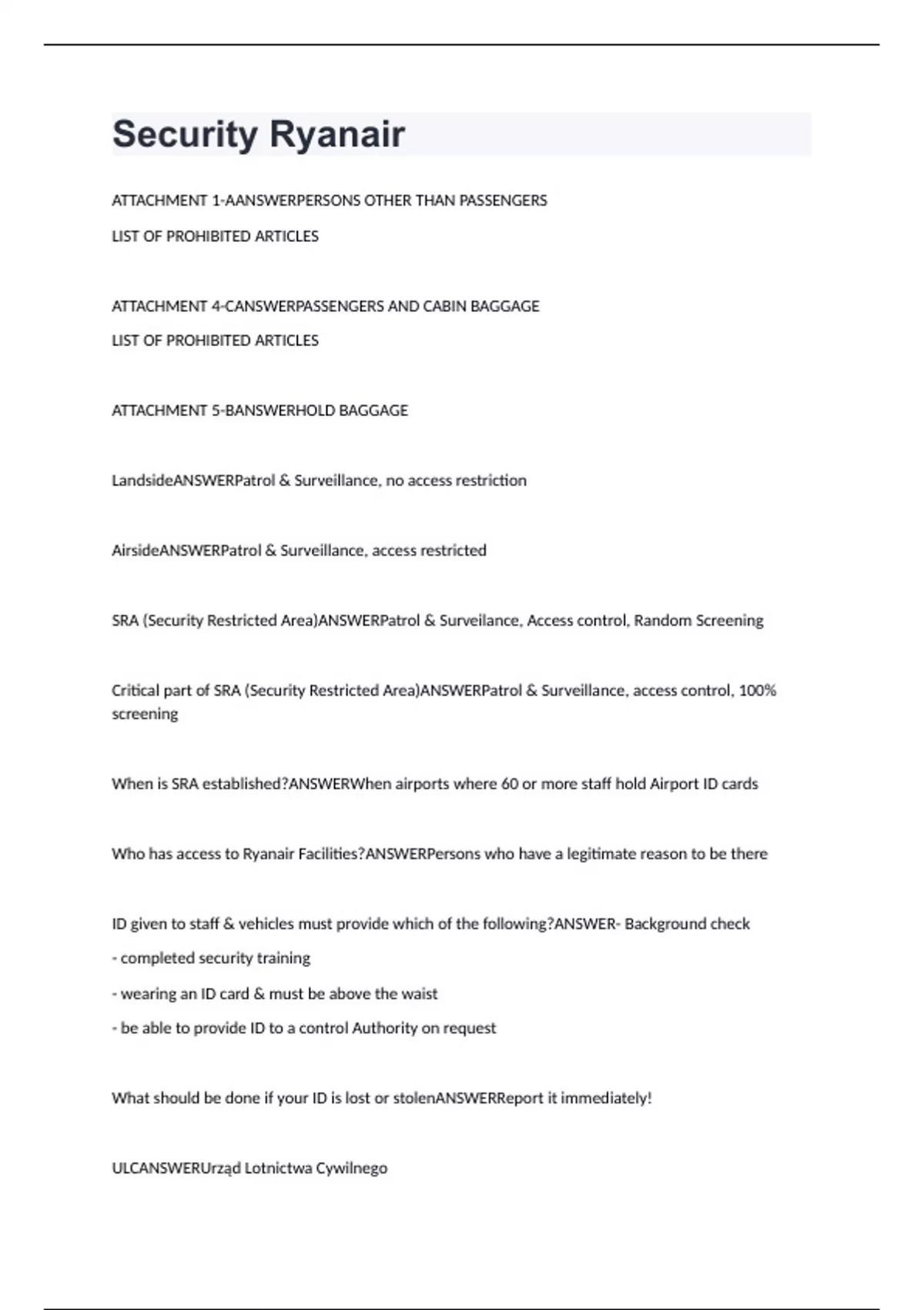 Security Ryanair Exam Study Questions With Correct Answers (RATED 100%)
