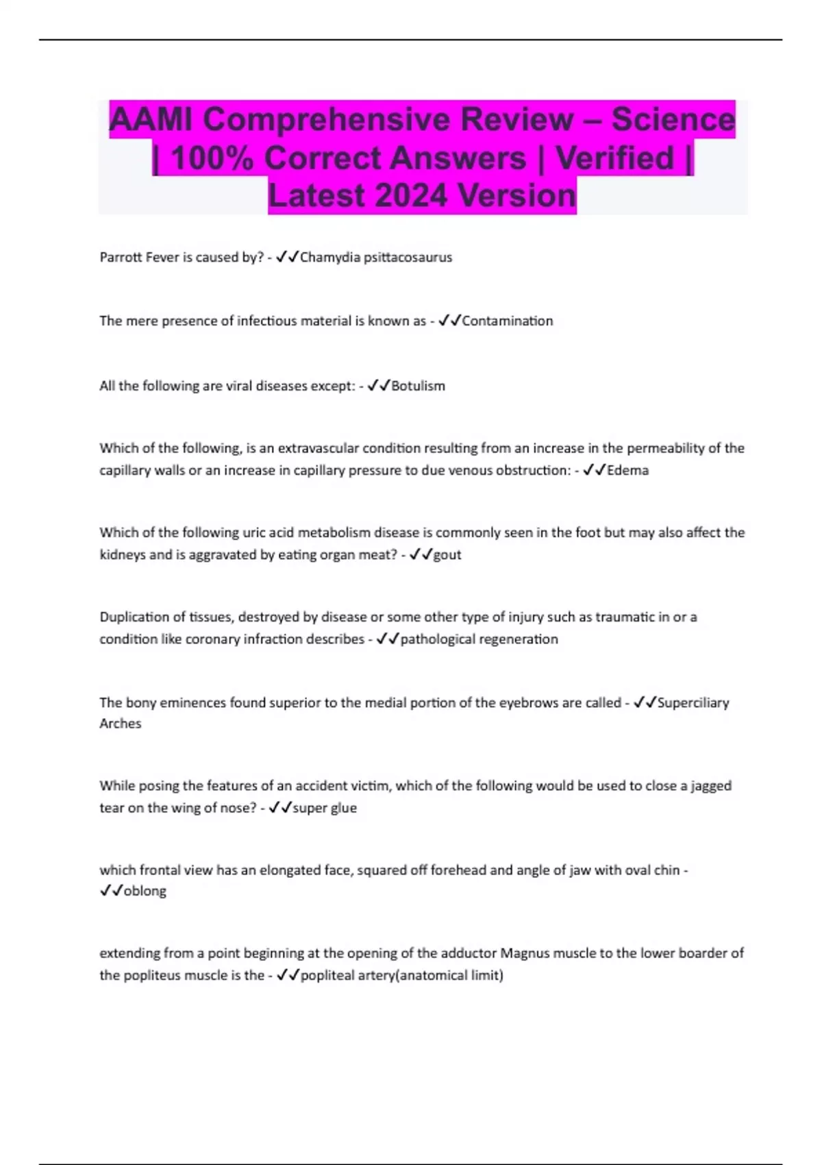 AAMI Comprehensive Review – Science | 100% Correct Answers | Verified | Latest 2024 Version