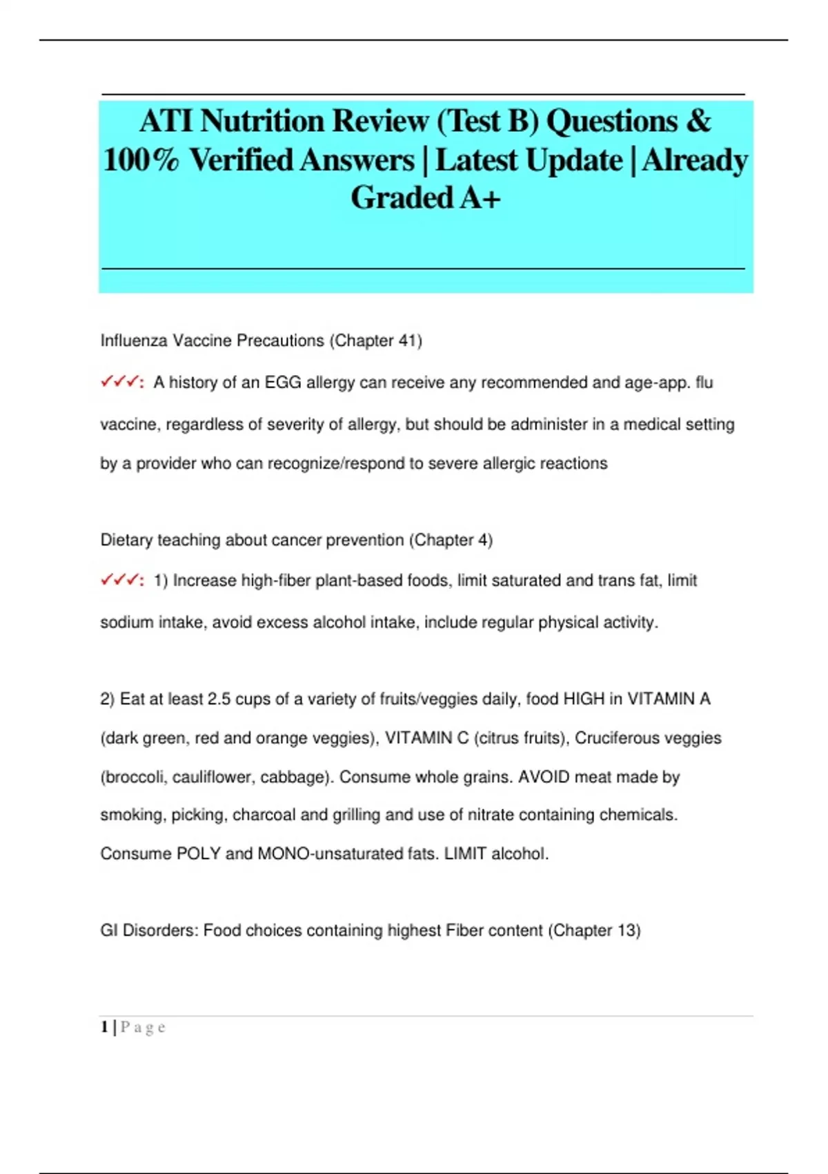 ATI Nutrition Review (Test B) Questions & 100% Verified Answers | Latest Update | Already Graded A+