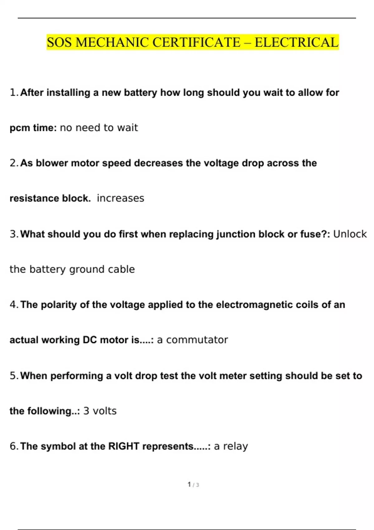SOS Mechanic Certificate - Electrical|Complete Questions with Graded A+ Answers