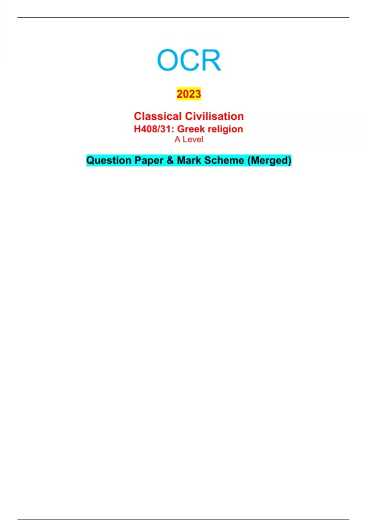 - OCR 2023 Classical Civilisation H408/31