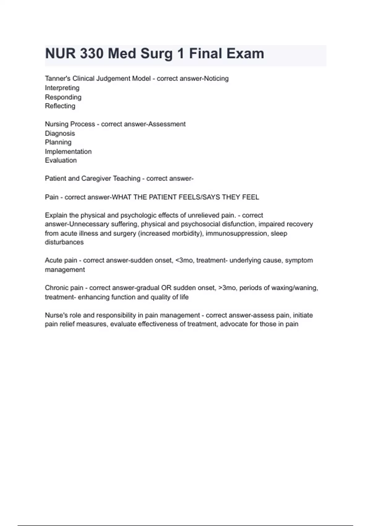 NUR 330 Med Surg 1 Final Exam
