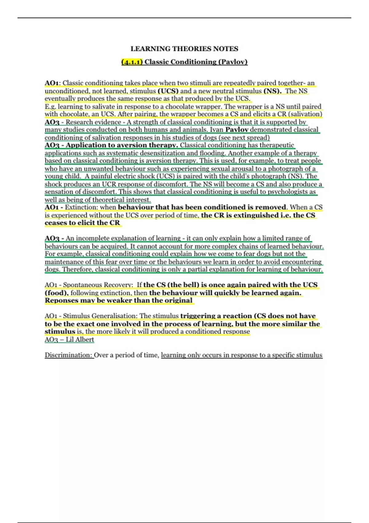 AO1 - Extinction: when behaviour that has been conditioned is removed . When a CS