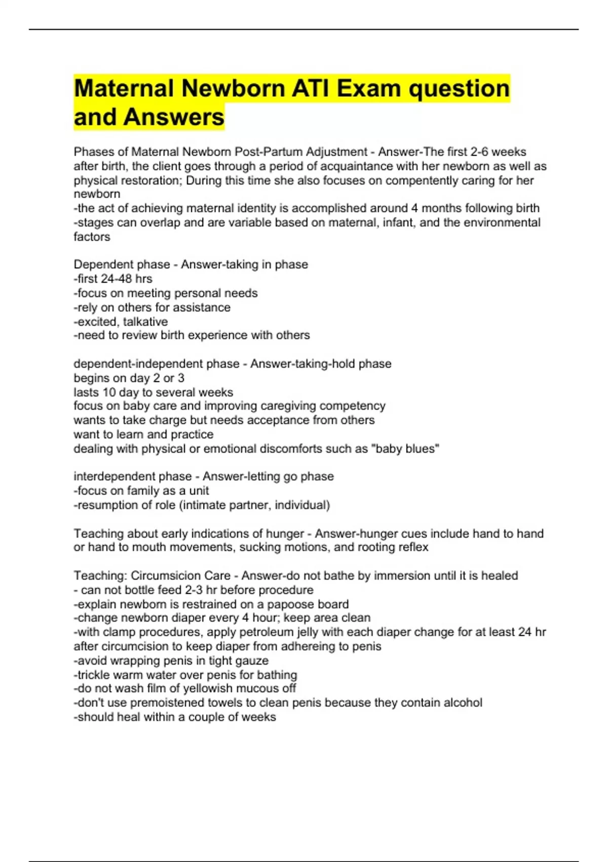 maternal newborn ati exam question and answers