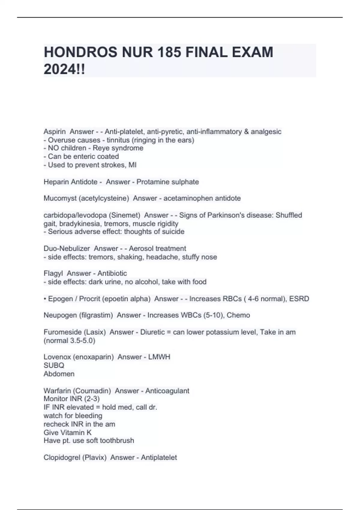 HONDROS NUR 185 FINAL EXAM 2024!!