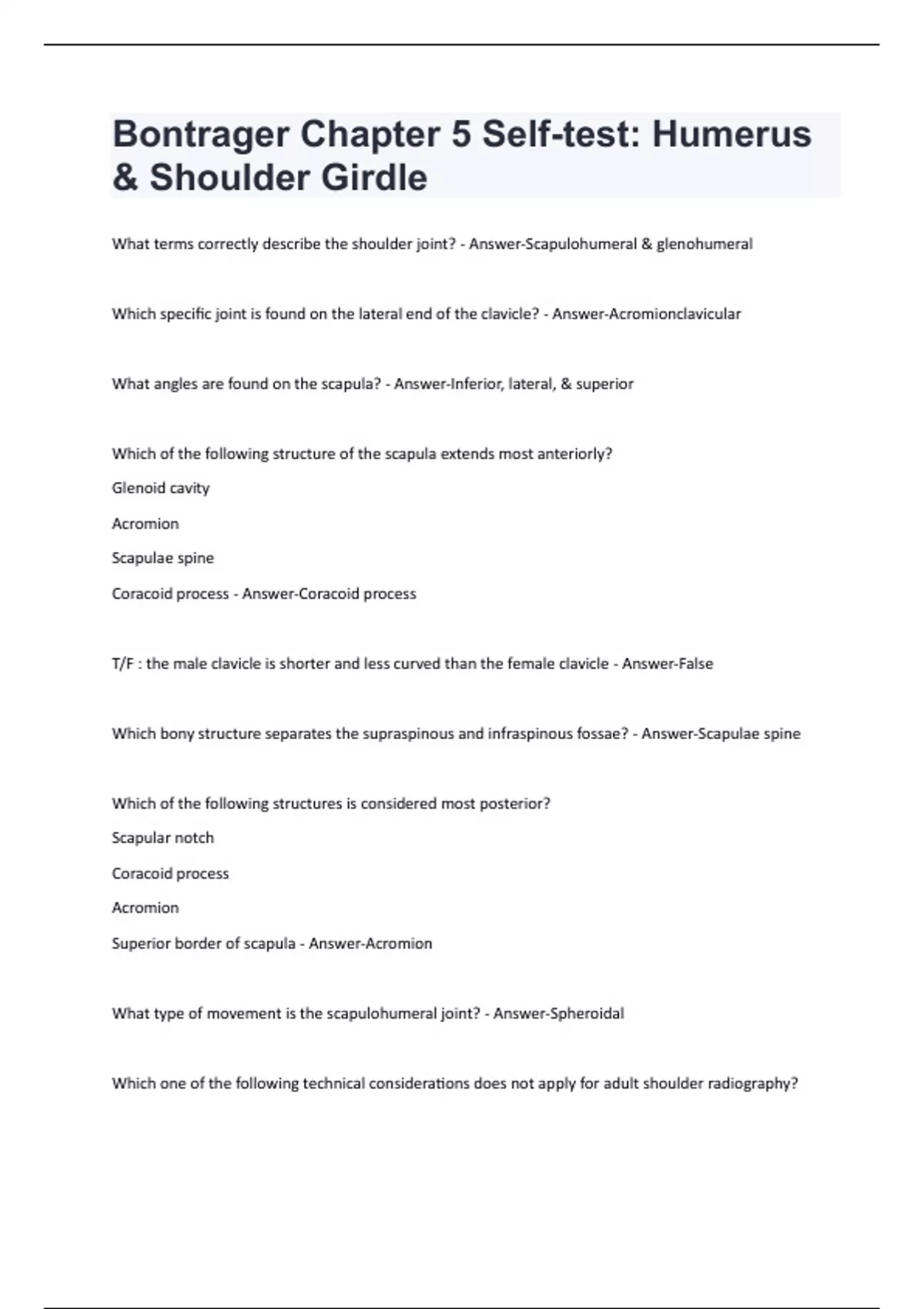 - Bontrager Chapter 5 Self-test: Humerus & Shoulder