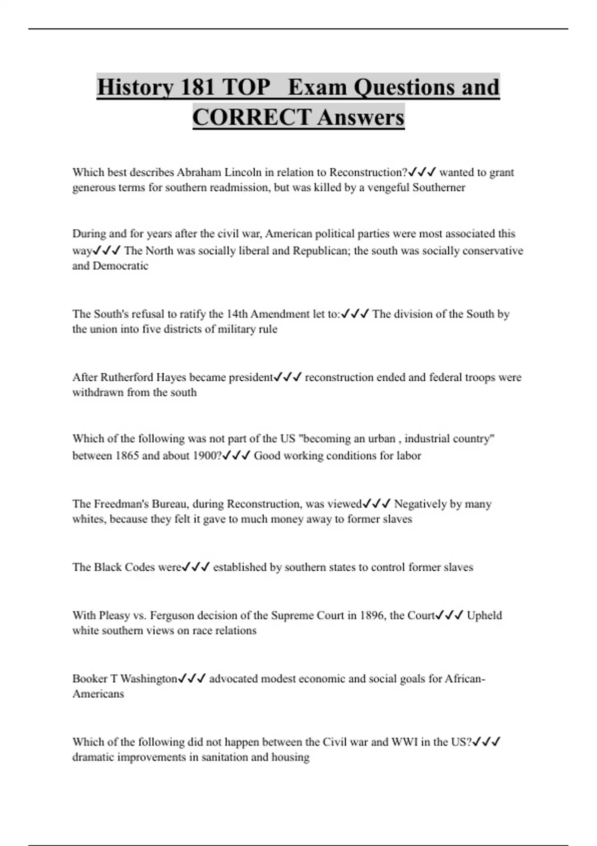 History 181 TOP Exam Questions and CORRECT Answers