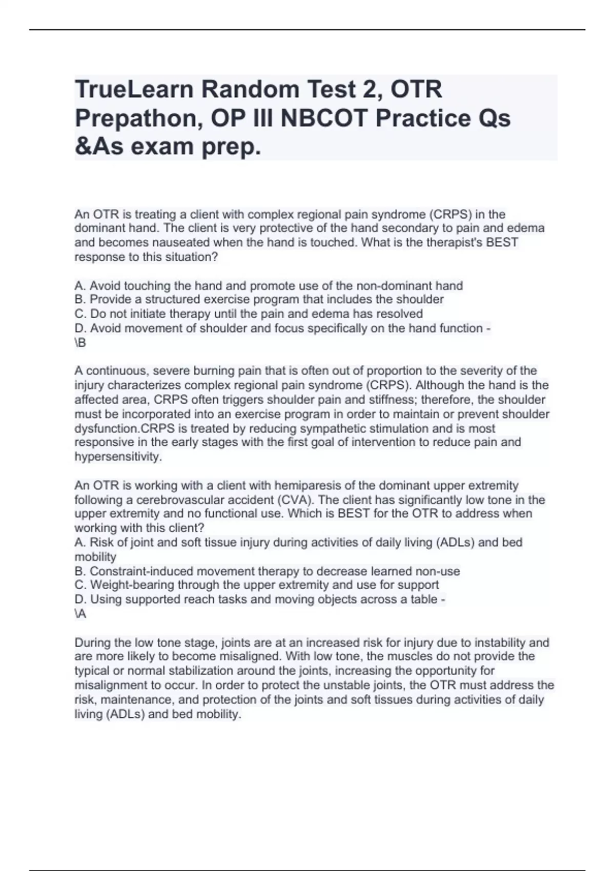 Prepathon, OP III NBCOT Practice Qs