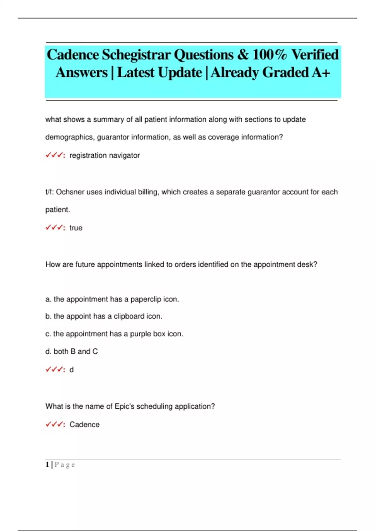 Cadence Schegistrar Questions & 100% Verified Answers | Latest Update | Already Graded A+
