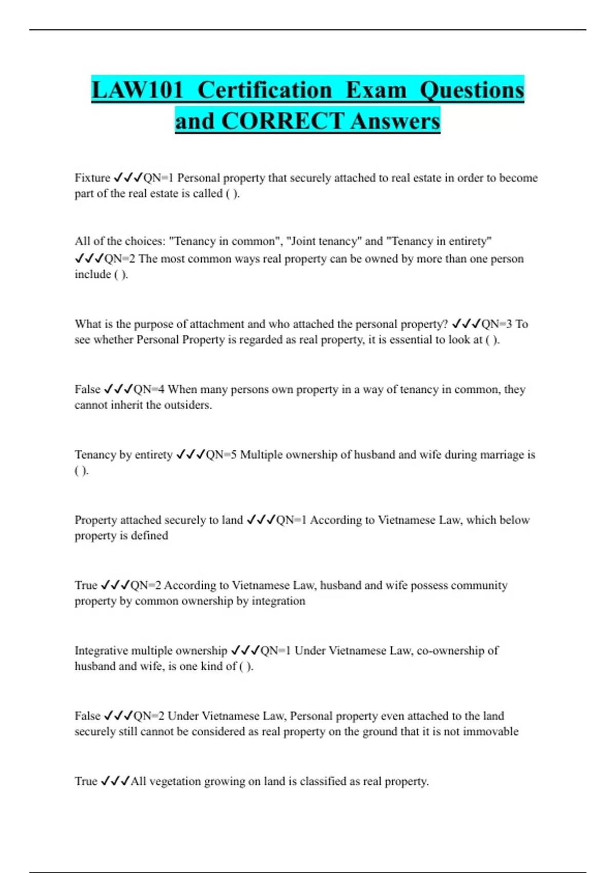 LAW101 Certification Exam Questions and CORRECT Answers
