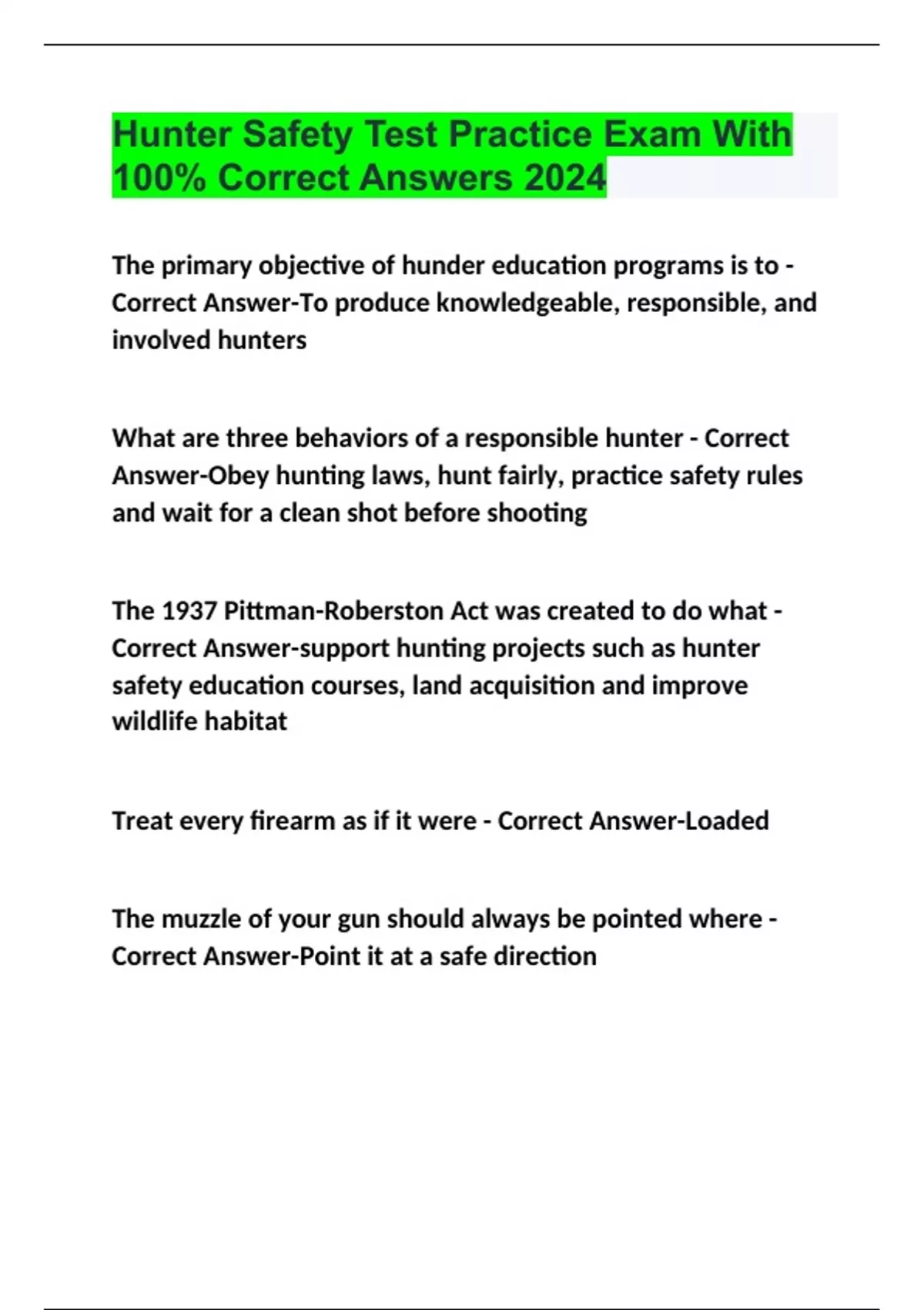 Hunter Safety Test Practice Exam With 100% Correct Answers 2024