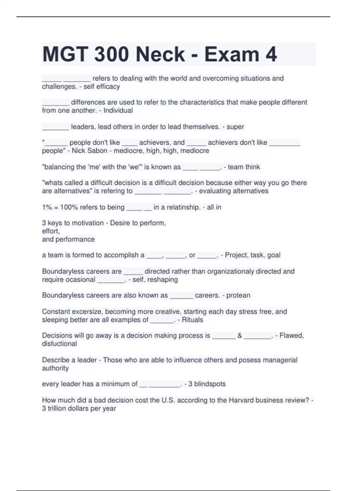 MGT 300 Neck - Exam 4