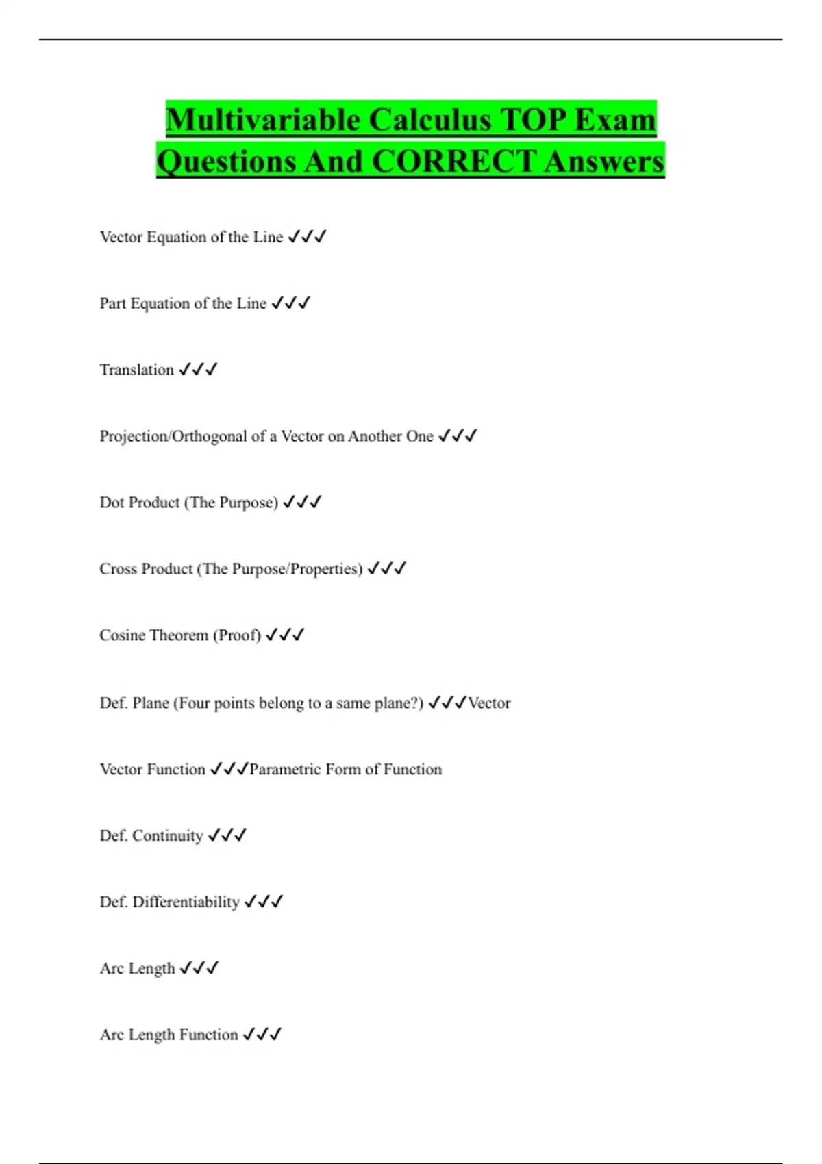 Multivariable Calculus TOP Exam Questions And CORRECT Answers