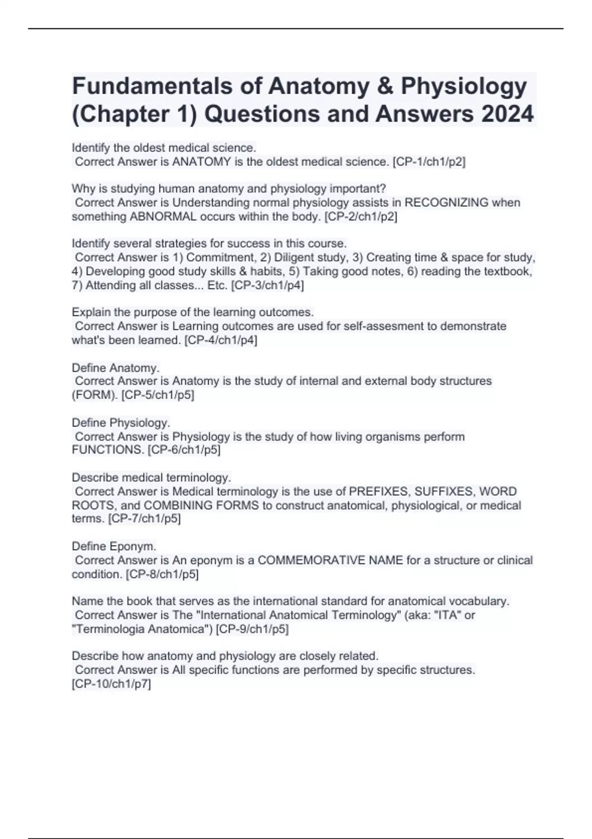 Fundamentals of Anatomy & Physiology (Chapter 1) Questions and Answers 2024