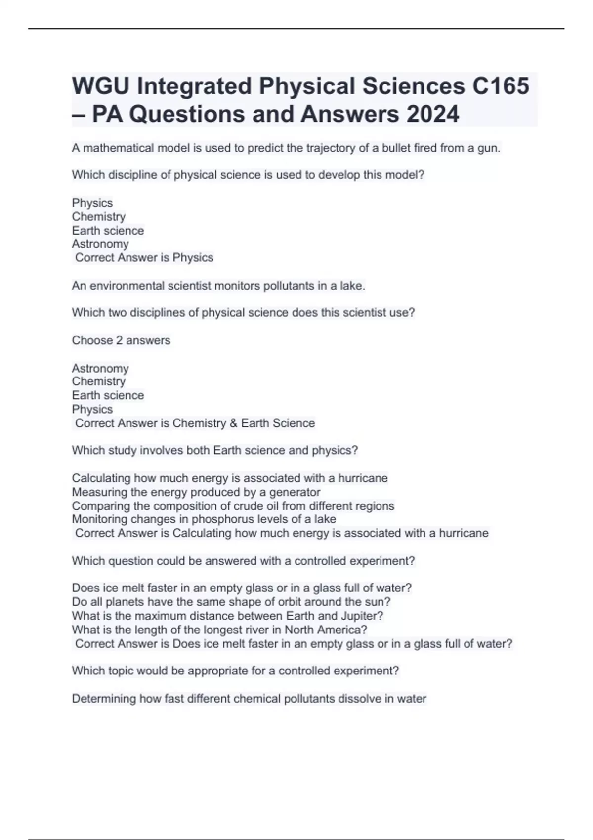 WGU Integrated Physical Sciences C165 – PA Questions and Answers 2024