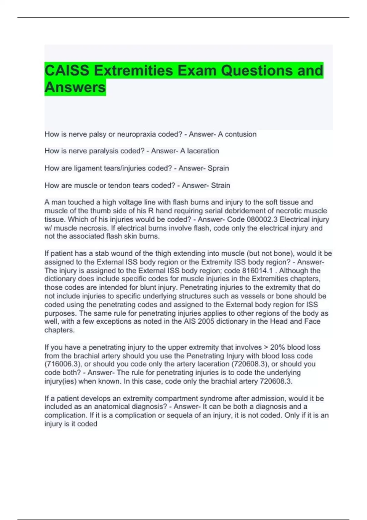 CAISS Extremities Exam Questions and Answers