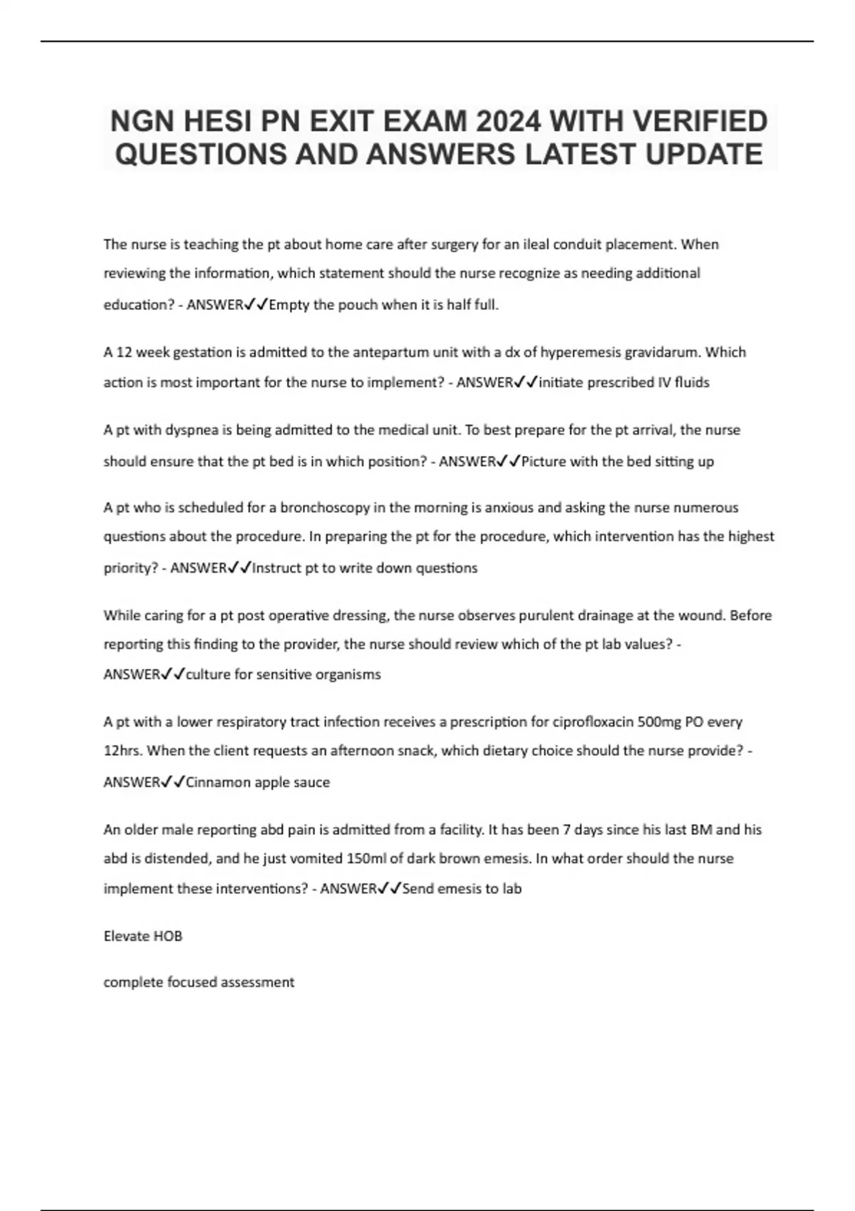 NGN HESI PN EXIT EXAM 2024 WITH VERIFIED QUESTIONS AND ANSWERS LATEST UPDATE.