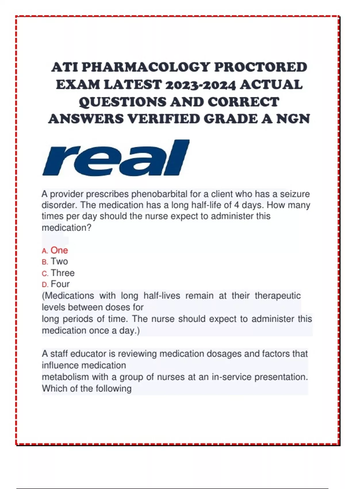 ATI PHARMACOLOGY PROCTORED EXAM LATEST ACTUAL QUESTIONS AND CORRECT ANSWERS VERIFIED GRADE A NGN