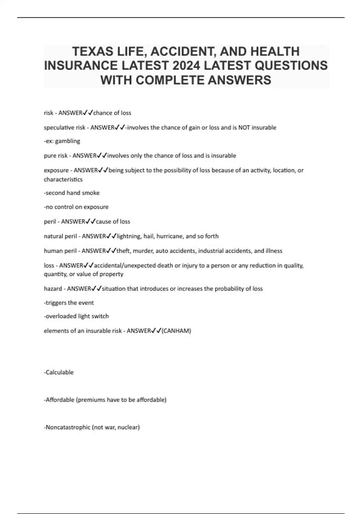 TEXAS LIFE, ACCIDENT, AND HEALTH INSURANCE LATEST 2024 LATEST QUESTIONS WITH COMPLETE ANSWERS