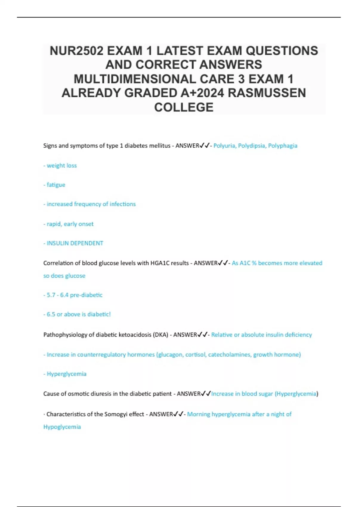 NUR2502 EXAM 1 LATEST EXAM QUESTIONS AND CORRECT ANSWERS MULTIDIMENSIONAL CARE 3 EXAM 1 ALREADY GRADED A+2024 RASMUSSEN COLLEGE.