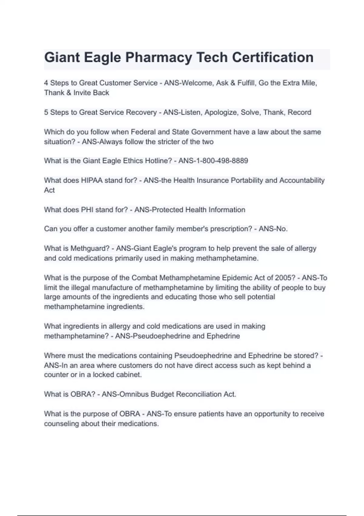 Giant Eagle Pharmacy Tech Certification