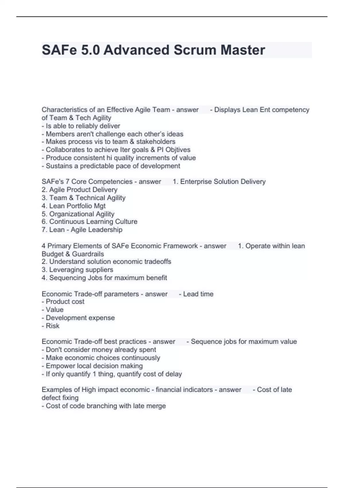 SAFe 5.0 Advanced Scrum Master Questions with Accurate Answers 2024