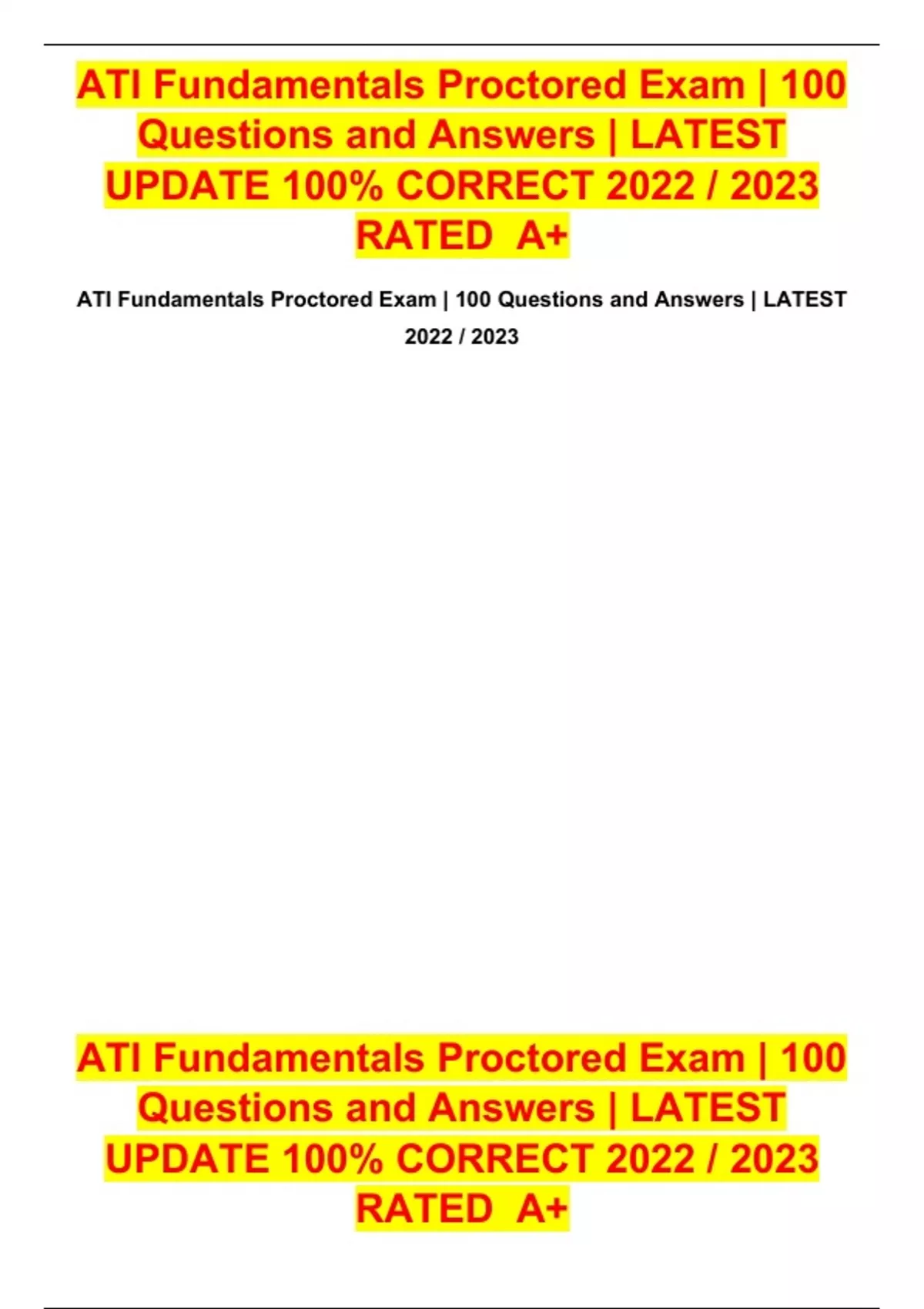 ATI Fundamentals Proctored Exam | 100 Questions and Answers | LATEST 2022 / 2023