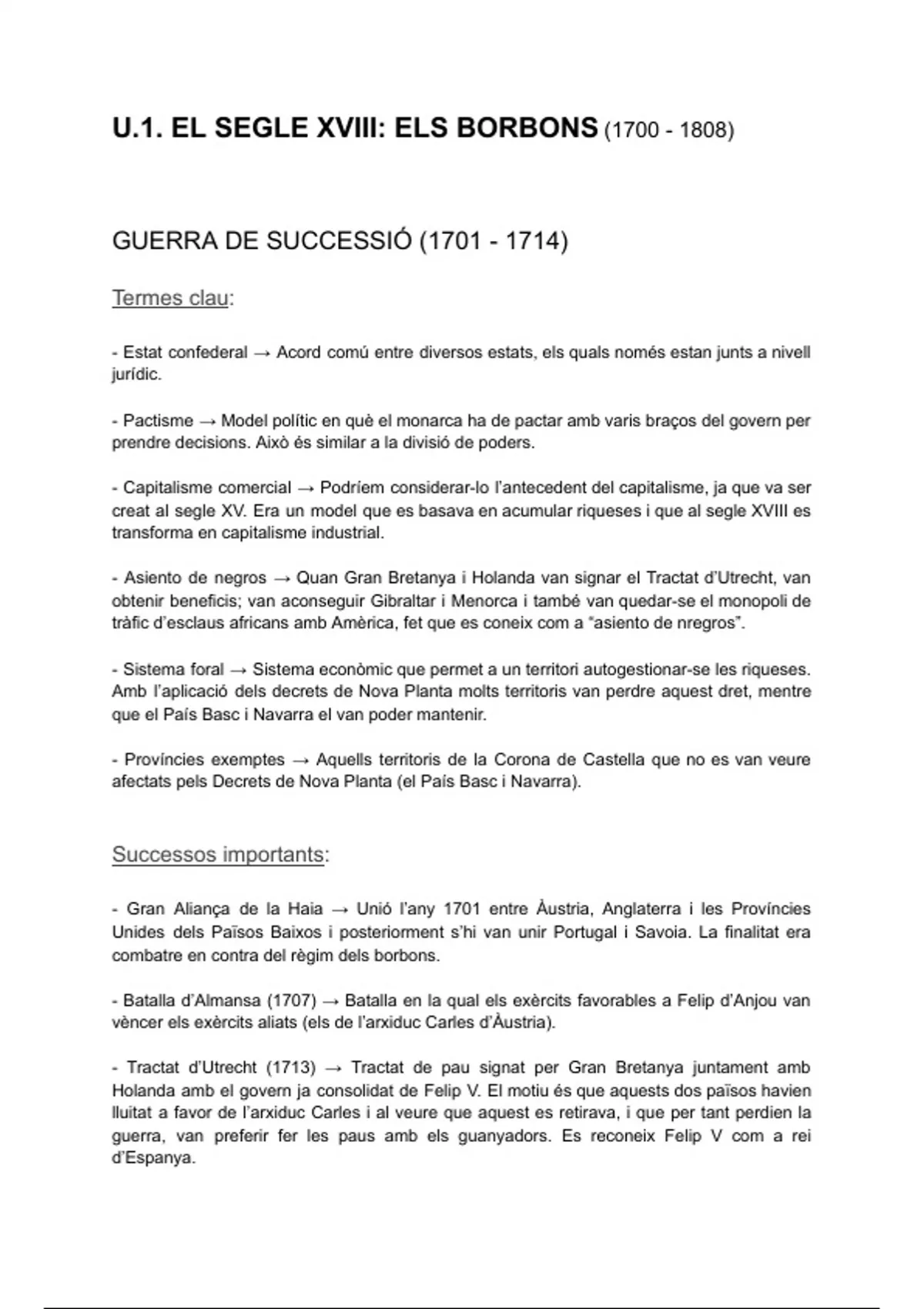 U.1. EL SEGLE XVIII: ELS BORBONS (1700 - 1808)
